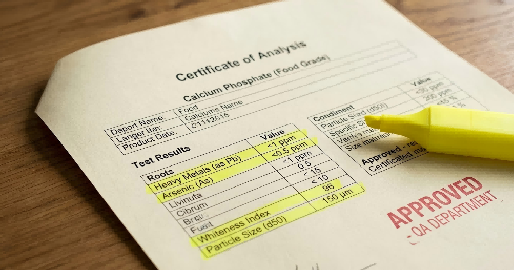 Many customers just look at the main assay, like “Tricalcium Phosphate > 98%”. But the real story is in the details that are often overlooked. In my experience, we obsess over three specific things for our food and feed customers. First, heavy metals. This is non-negotiable for food safety and a primary concern for any reputable food manufacturer. We test every single batch to ensure levels of lead, arsenic, and other metals are well below strict international limits. Second is whiteness[4]. A customer in the dairy industry once told me our product made their processed cheese look brighter and more appealing. That’s because we control the purification process to remove tiny impurities that can cause a grayish or yellowish tint. Third is particle size[5]. This property affects how the product behaves in your application. For a bakery customer, the right particle size[5] determines how quickly their leavening agent reacts. Too fast and the cake collapses; too slow and it doesn’t rise enough. We ensure our particle size[5] distribution is stable batch after batch.